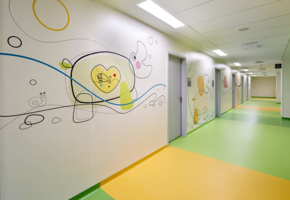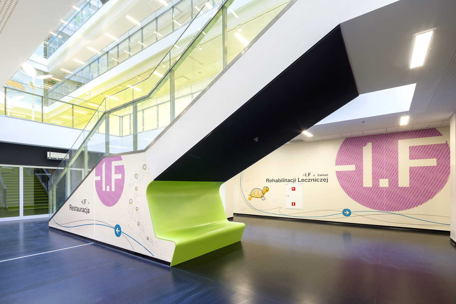 Integralną część projektu stanowi opracowanie Systemu Identyfikacji Wizualnej, które powstało we współpracy ze studiem brandingowym Diagram z Poznania. Celem opracowania było nie tylko zapewnienie łatwości identyfikacji przestrzeni i usprawnienie komunikacji, ale równie chęć wykreowania przyjaznego środowiska, z myślą o małych pacjentach i ich rodzicach.