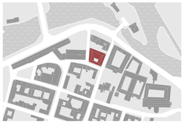 Lokalizacja projektowanego gmachu nie nosi znamion dominanty, znajduje się w zwięzłej zabudowie i ze względu na sposób postrzegania jej architektury przez określone perspektywy i narożniki powinna być ukłonem w stronę traktowania projektowanego budynku jako uzupełnienia zespołu „ścian” w urbanistyce miasta.