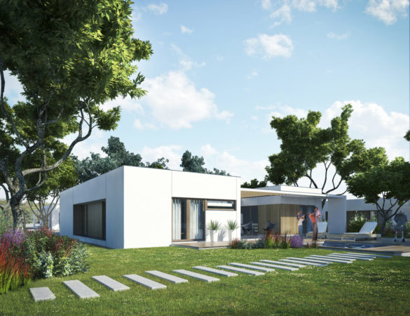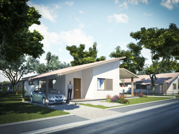 Głównym wymaganiem inwestora było stworzenie budynków mieszkalnych o różnym standardzie, spełniających warunki klimatyczne jakimi są obfite deszcze i duże nasłonecznienie. W efekcie powstały domy parterowe z licznymi zadaszeniami i wycięciami w bryle. Cechą wspólną odmiennie zadaszonych budynków są okna zaprojektowane w głębokich podcieniach, przesuwne żaluzje oraz jasna kolorystyka, przełamana drewnianą okładziną ścian i tarasów.