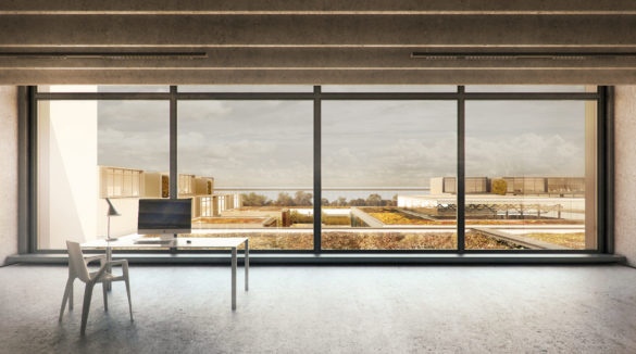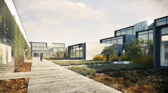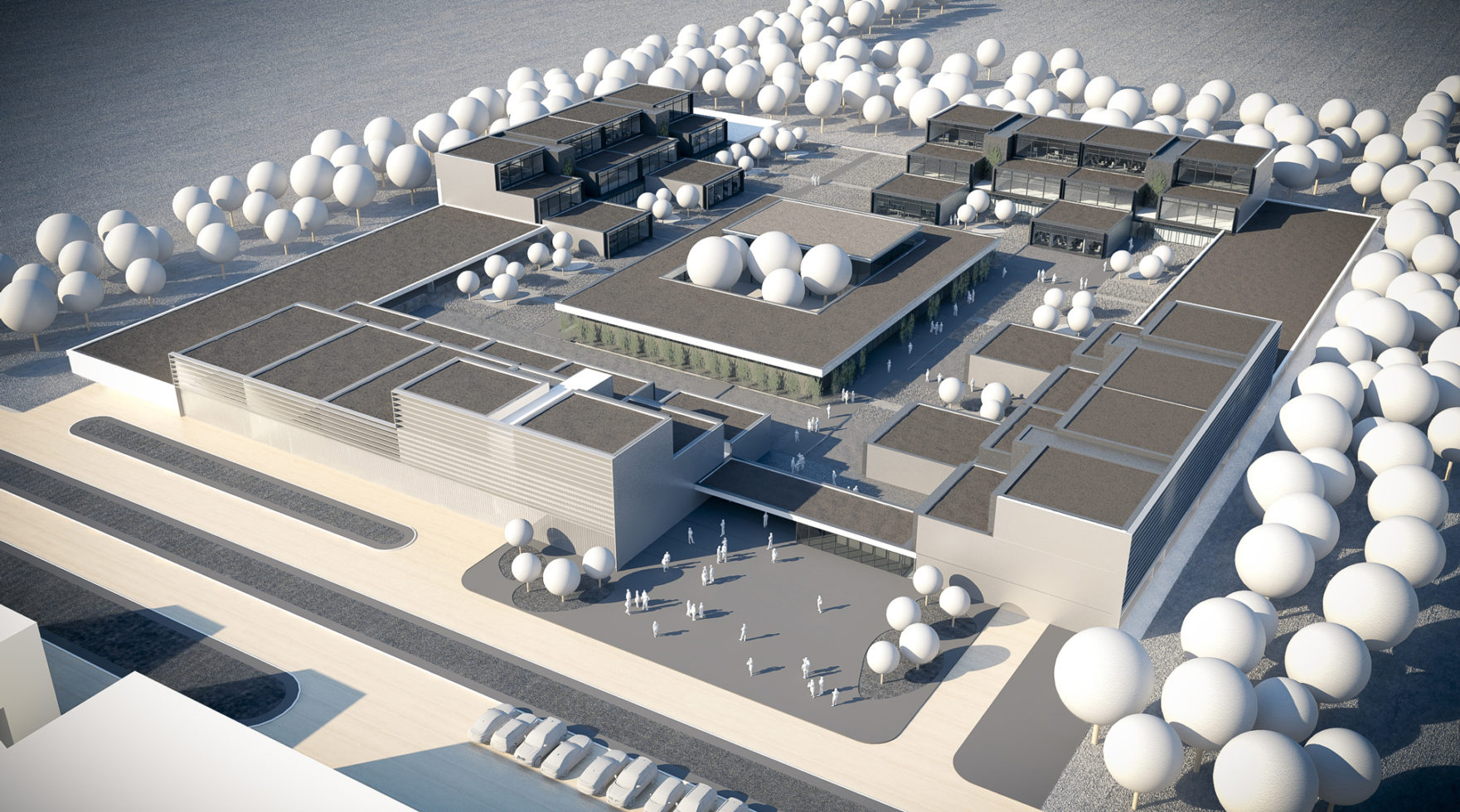 Podstawowym modułem (biurowym, naukowym, przemysłowym) tego organizmu jest kostka, zaprojektowana jako samowystarczalna przestrzeń do pracy. Każda z komórek została zwrócona do środka założenia, otwierając się poprzez duże przeszklenia na własny fragment wewnętrznego dziedzińca. Dodatkowym zabiegiem eliminującym rozpraszające oddziaływanie otoczenia było takie usytuowanie stanowisk parkingowych, aby hałas samochodów nie zakłócał spokoju pracujących.
