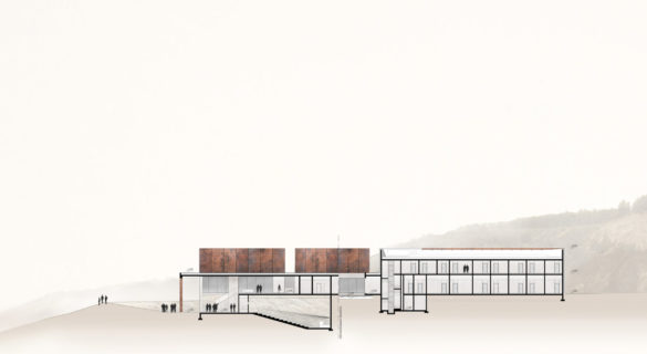 Założeniem projektowym było stworzenie obiektu, który dopełniałby krajobraz Chęcin i okolic w sposób pozwalający na rozpoznanie granic działalności człowieka oraz udowodniał, że działalność ta może współistnieć z otoczeniem w sposób harmonijny. W projekcie zdecydowano się na zastosowanie prostych geometrycznych brył, skomponowanych w sposób logiczny, nie udających natury nie pozostawiających wątpliwości, że ich stwórcą jest człowiek przy jednoczesnym świadomym operowaniu skalą i kompozycją w sposób uniemożliwiający budynkom zdominowanie miejsca. Podstawowy materiał wykończeniowy – skorodowana stal, jest dowodem działalności człowieka jednak w żaden sposób nie odnosi się do jej czasu nadając budynkom racje bytu w miejscu gdzie stulecia mają przecież stosunkowo małe znaczenie.